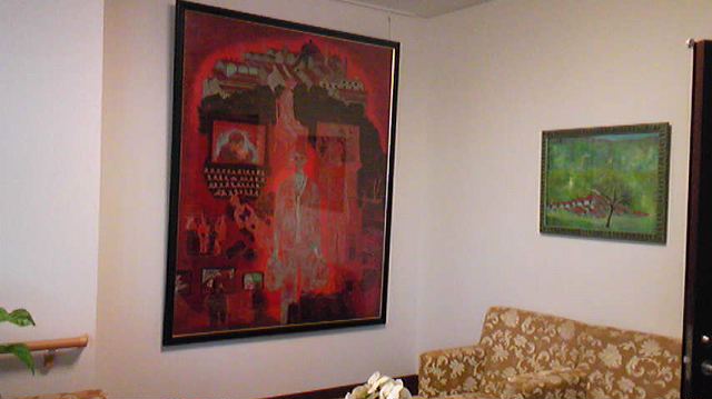有料老人ホーム『エスケア阿久比』が10/1〜オープンとなる!今日23日(祝)と明日24日の二日間内覧会(AM10:00〜PM4:00)!今日は朝から生憎の天気で雷も伴う雨模様。出足が鈍るのではと思いきや…ヤハリ時世・介護施設は関心事!よう賑わっていた。ヒョンな縁から私の絵が白い壁を飾り色を添えて(?)いた!!『エスケア阿久比』に出掛けて頂くと常に私の作品8点(10号〜100号)が見ることが出来るというのは“うれしい”限りである。作家冥利に尽きる!!