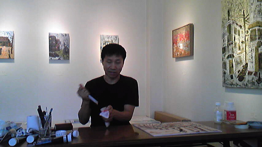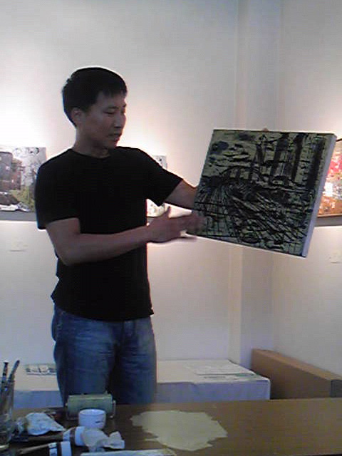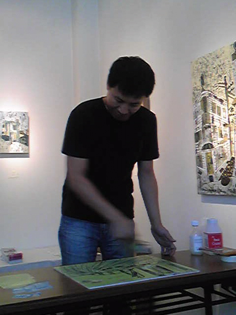 新作木版タブロー展(10/9〜24)が『樹樹画廊』(名古屋市中川区愛知町42-1)ではじまった!10日PM2:00〜公開制作があった!作品が出来上がる貴重な過程(手の内)を惜しみなく披露してくれた!絵を見に行っても企業秘密とばかり教えない作家も居る中…LEEさんは違ってた!太っ腹だぁ〜。