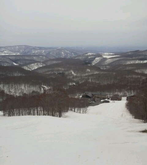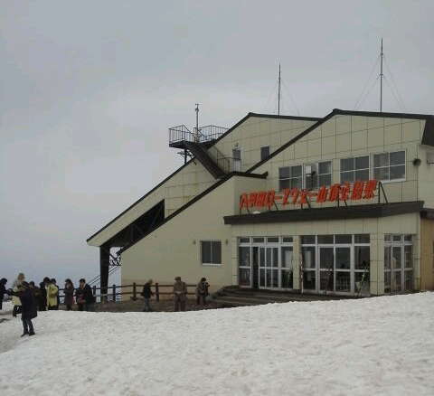 八甲田ロープウェーで上って田茂萢岳(1324m)山頂から 滑っ た \(^-^)/滑った\(^-^)