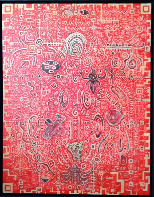 『QRコード縄文』50号 アクリル水彩画 QRコードは正方形だからF号よりS号に描いた方がそれらしく見えるのかも知れい?が・・・ ただ、鑑賞者がこの絵をジーと見ている内に縄文の世界に思いを巡らし楽しんで貰えたらイイなー と思い描いた!! 旧作に加筆してフィニッシュ⁉