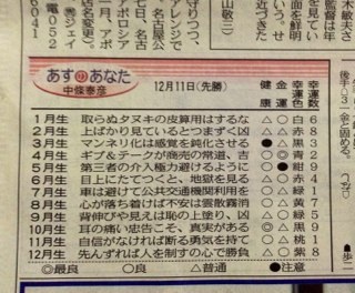 7月生まれの私の今日(12/11)の運勢は・・・(T_T) 今日は横浜からの二人(母娘)と弘前からの友人を車で湯の山温泉まで案内する コトになっているんで〜す!!