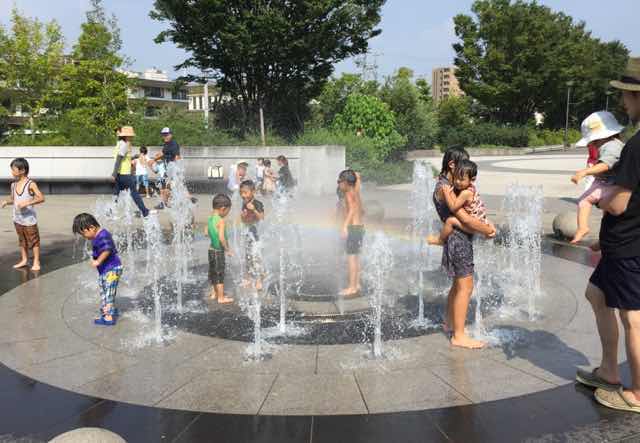 太田川駅前広場の噴水に興じている子供達が羨まし〜い❣️