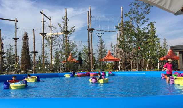 常滑イオンモール広場にドデカイプールがお目見え、舟遊びが出来る❣️ 但しこちらは¥500成り(>_<)
